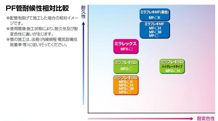 「PF管の耐候性ではミラフレキSD(MFD)とミラフレキMFの、どちらが優れていますか?」